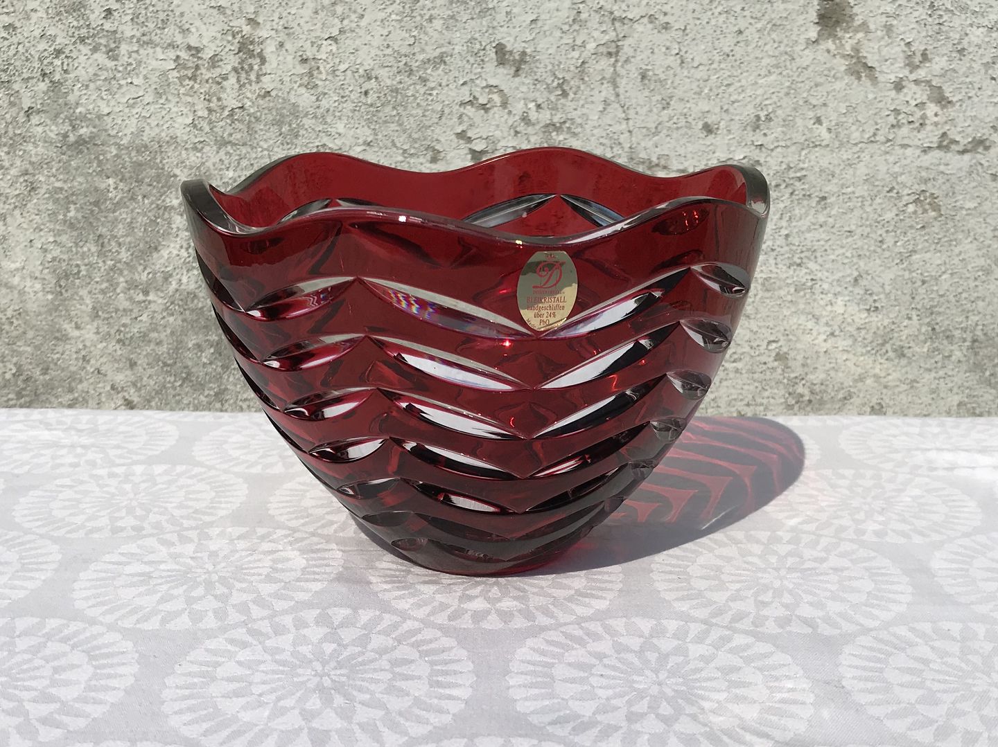 Red crystal bowl, lead crystal, 14cm high, 20cm in diameter, Made in Germany * Perfect condition *Stock: 1