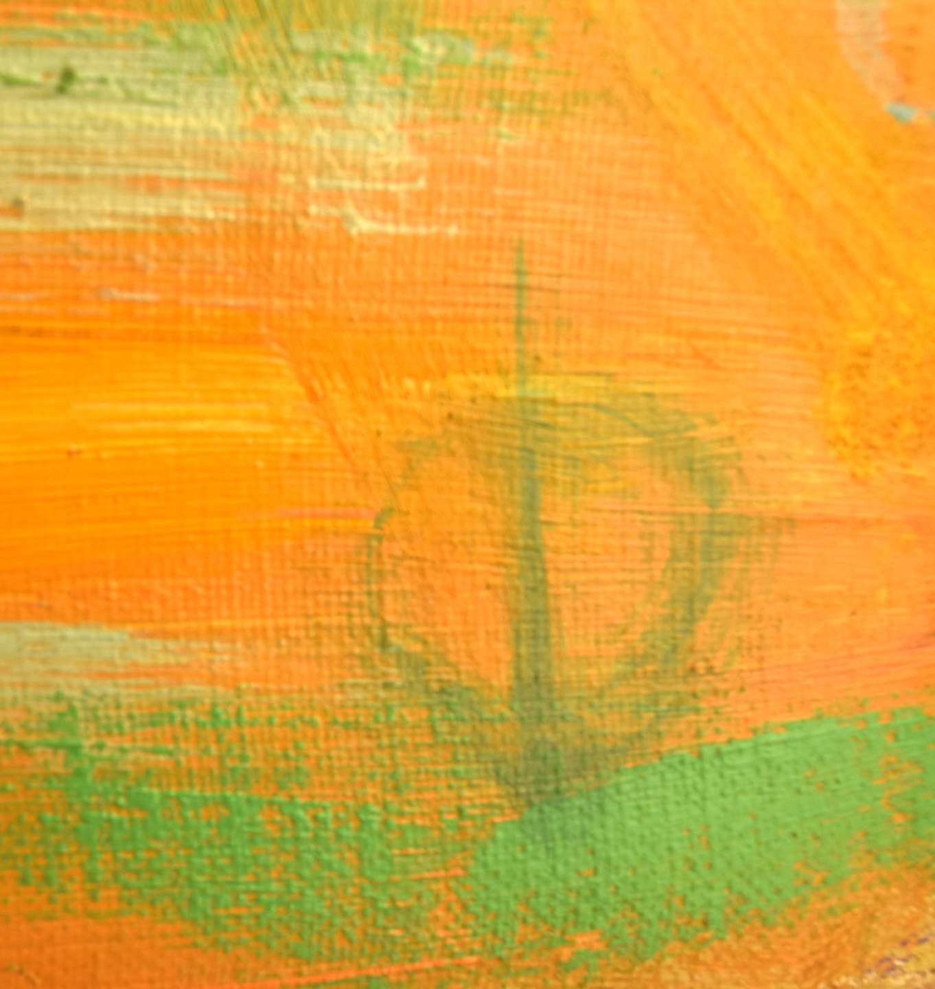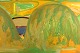 Hans Øllgaard (f. 1911, d. 1969). Olie på lærred. Modernistisk dansk sommerlandskab med høstakker. Dateret 1968.Signeret.