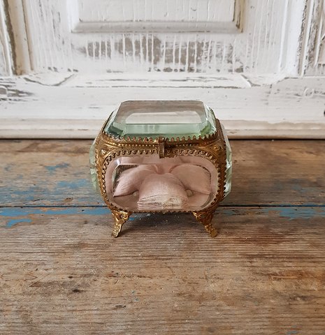 Skønt fransk skrin med original pude.Mål 8 x 8 cm. Højde 8 cm.