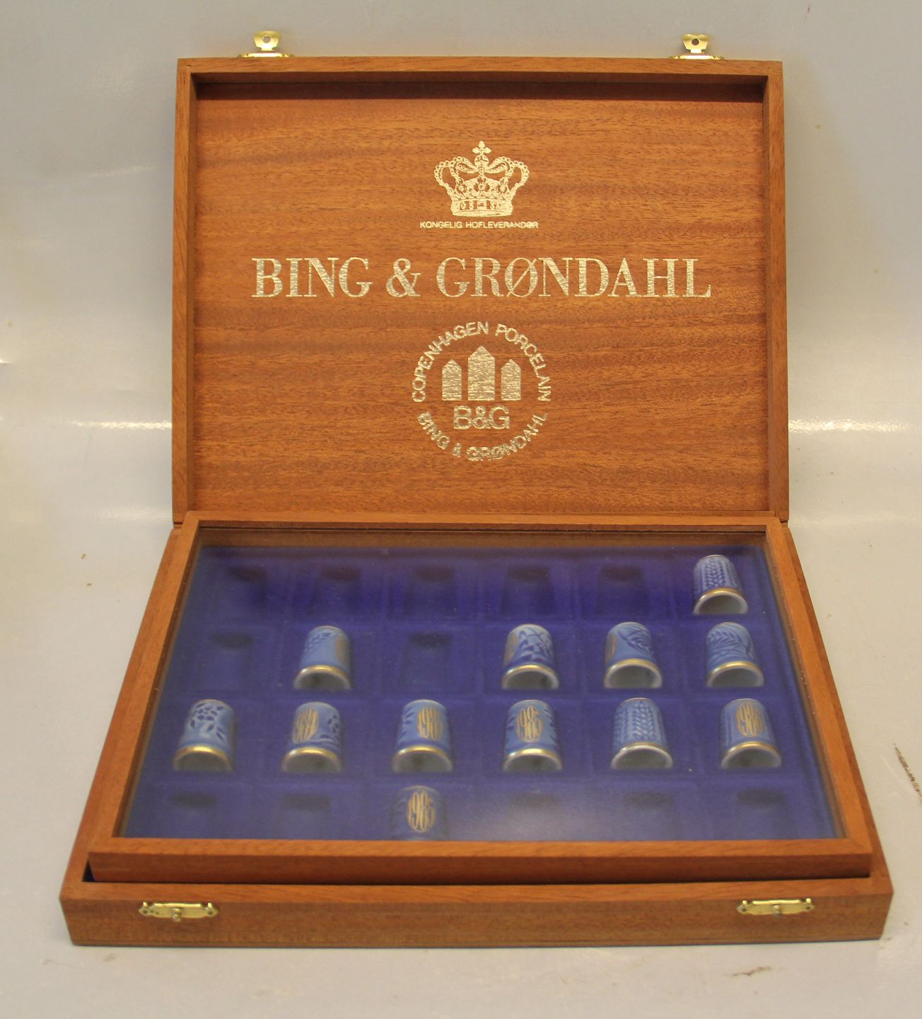 B&G Porcelain Original Wooden Box 26.5 x 20.5 c for Porcelain Thimbles Collectible TimbleBing and Grondahl Marked with the three Royal Towers of Copenhagen. Bing & Groendahl In mint and nice condition