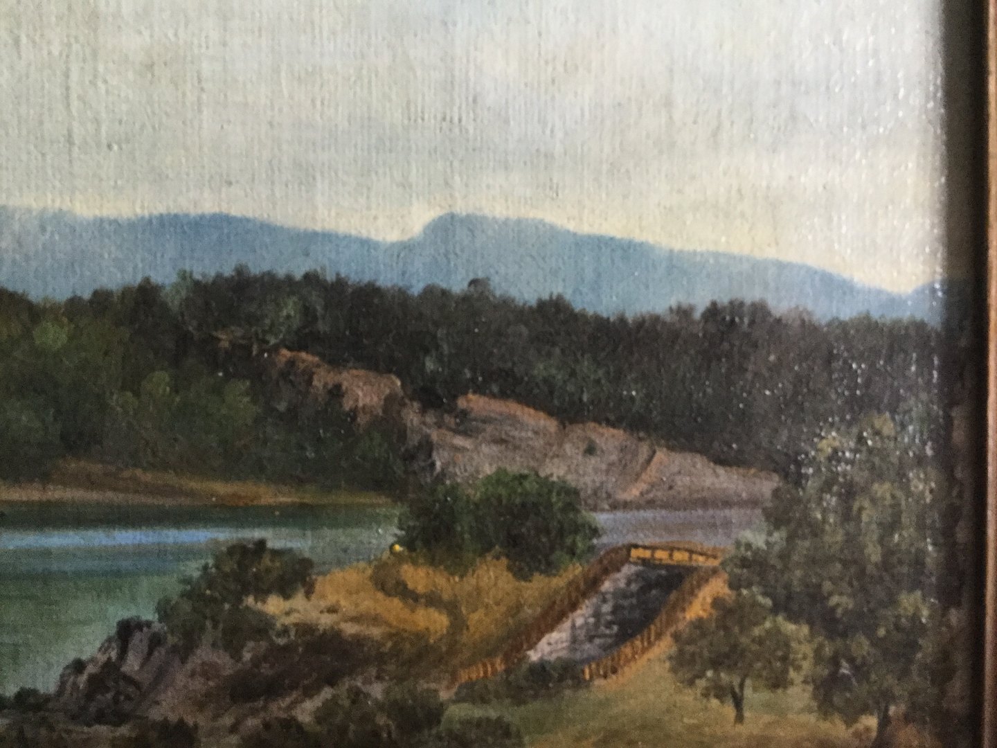 Ubekendt kunstner (20 årh):Landskab med udsigt til Herregård.