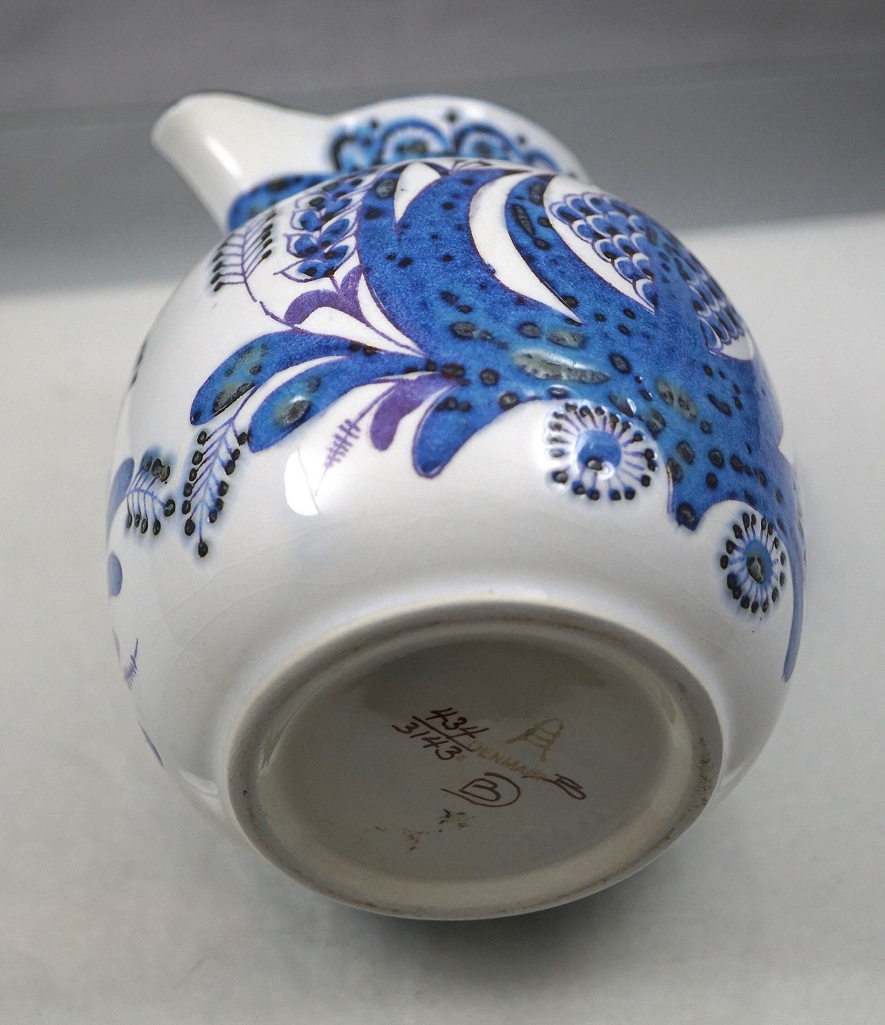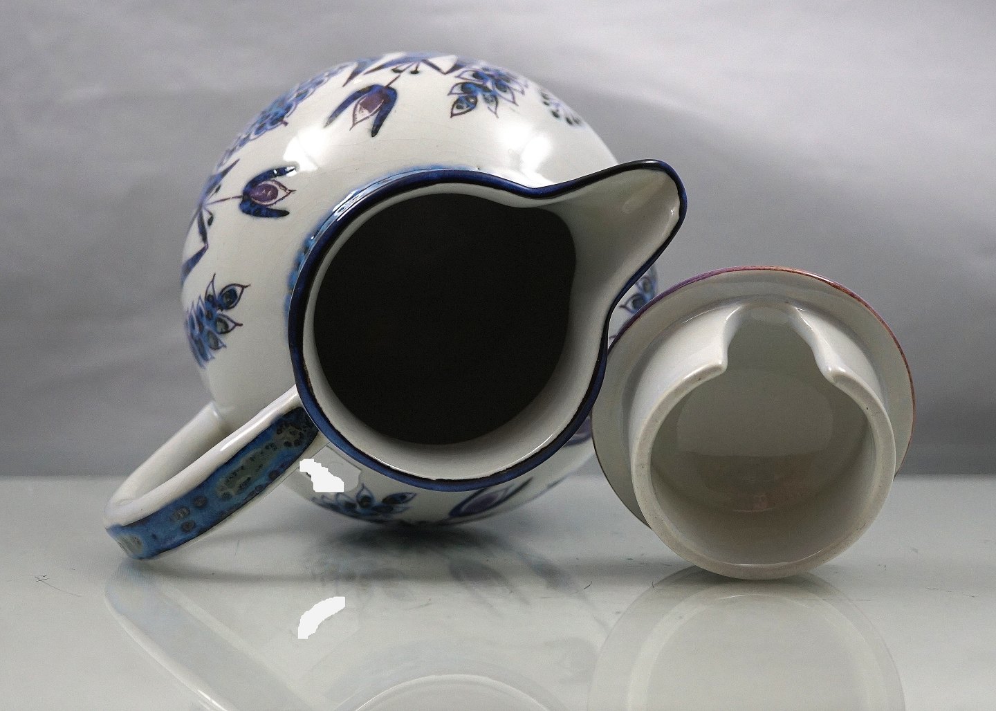 Royal Copenhagen Aluminia. Tenera kande, nr. 434/3143. Kande med låg, dekoreret med blå/lilla blomst og blade. kanden er fajance og 1. sorteringDesign Berte Jessen