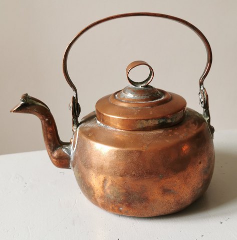 Lille kande i kobber fra 19. århundrede. Mestermærke på hanken. Har lidt reparationer. H. 13½ cm incl. låg