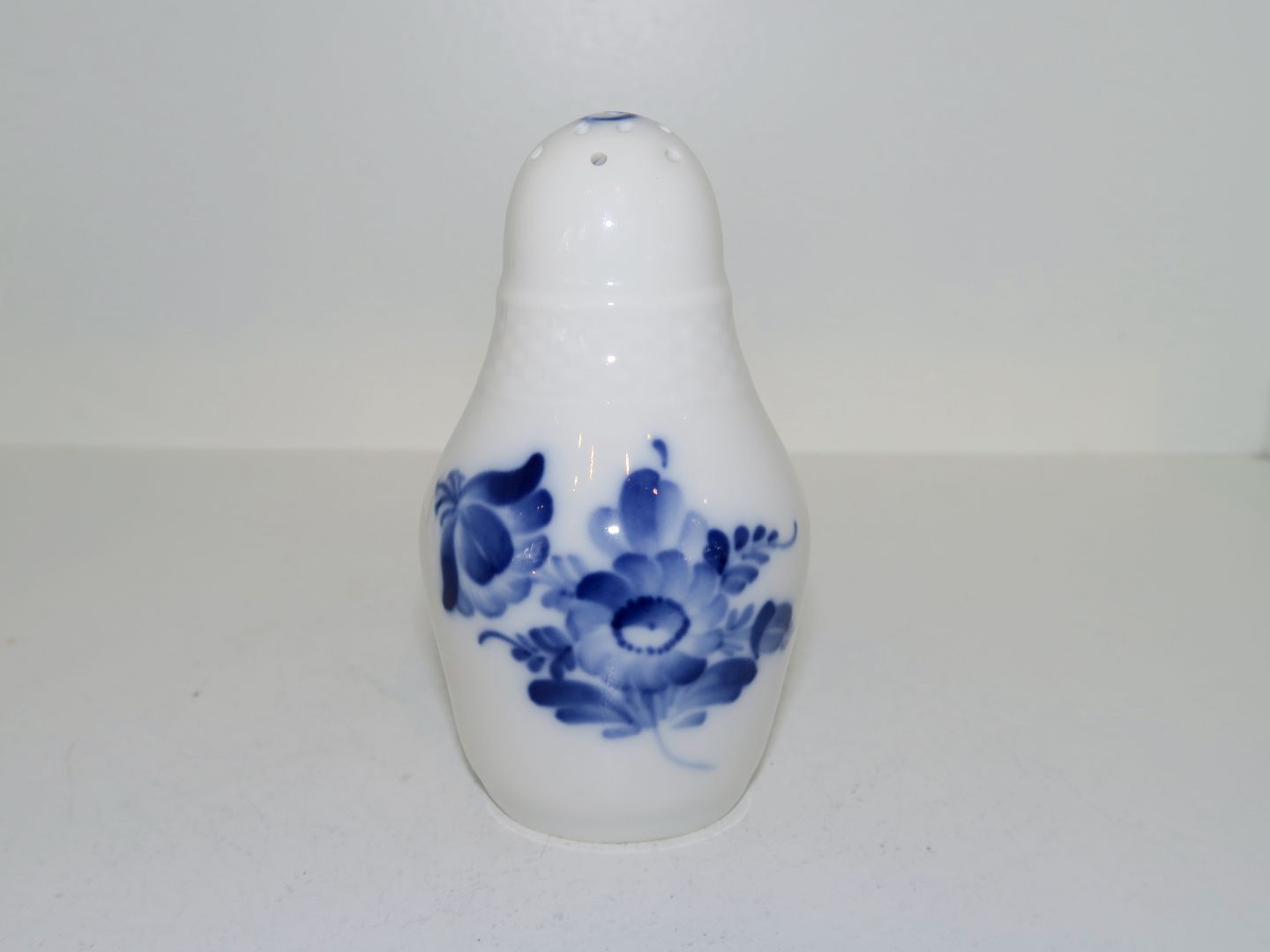 Royal Copenhagen Blå Blomst Flettet, saltbøsse med "S" i toppen.Dekorationsnummer 10/8225.
