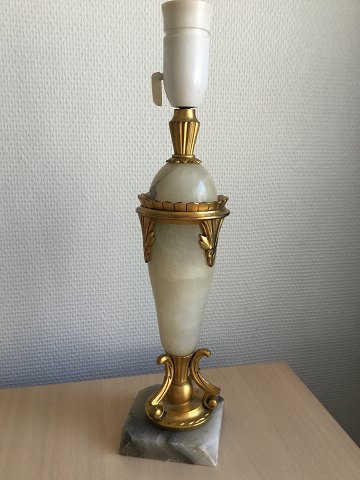 Bordlampe i alabast og forgyldt bronze.Kvadratisk for med affasede hjørner.