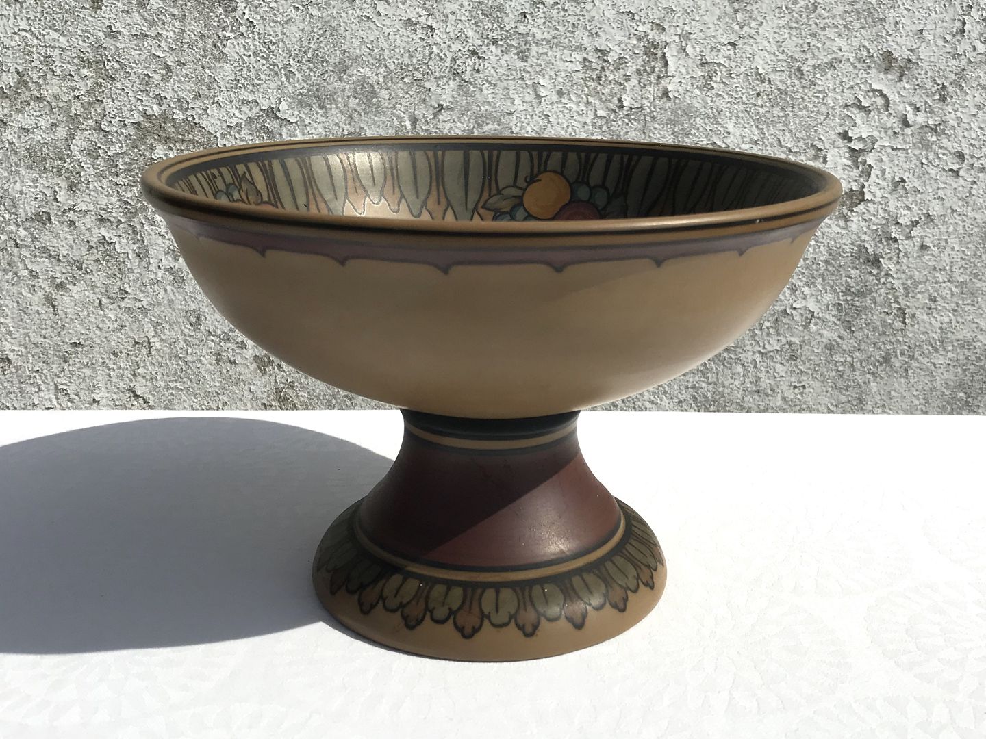 Bornholmsk keramik, Hjorth, Brun stentøj, Frugtopsats med frugtdekoration, Nr. 112, 15cm høj, 23cm i diameter *Pæn stand*Lager: 2