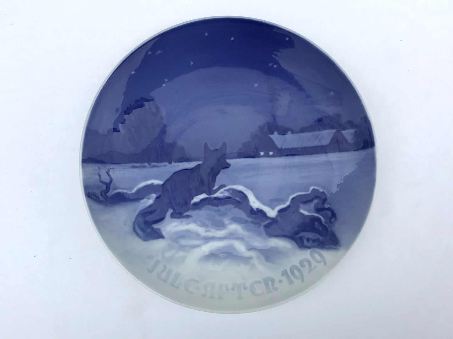 Bing & Grøndahl, Juleplatte, 1929, Ræv udenfor bondegård, 18cm i diameter, Design Johannes Achton Friis *Perfekt stand*