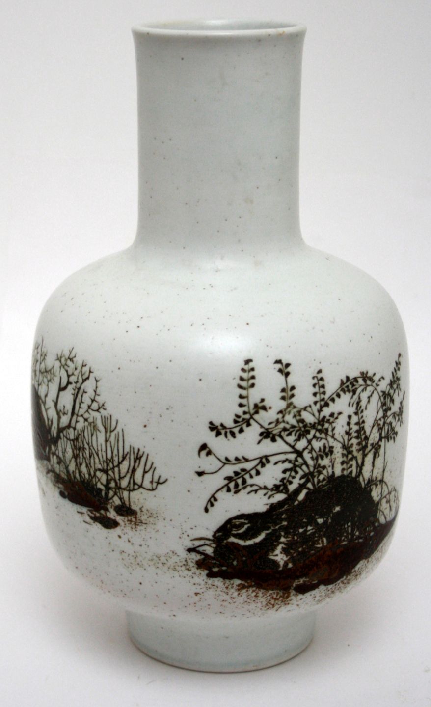 Royal Copenhagen, Diana serien, stor vase med hare. Designet af Nils Thorsson i 1970'erne. Formnr. 1109/5869. Største diameter 17,5 cm. Højde 31 cm. I. sortering. Pris: 1450 kr. stk. Lager: 1 Udstiller