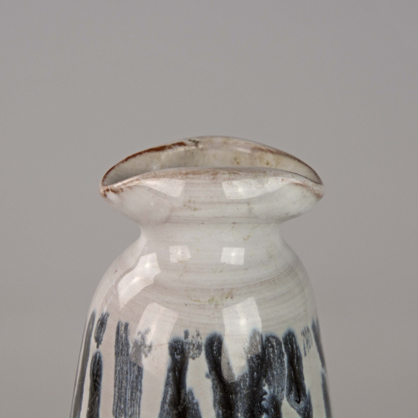 Vase i keramik med hvid glasur og stribet mønsterProduceret af Halm keramik