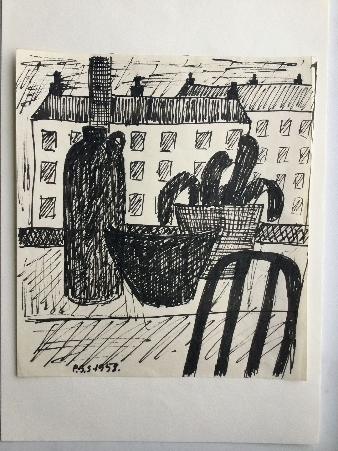 Peder Brøndum Sørensen (1931-2001):Opstilling i vindue med kaktus og krukker 1958.