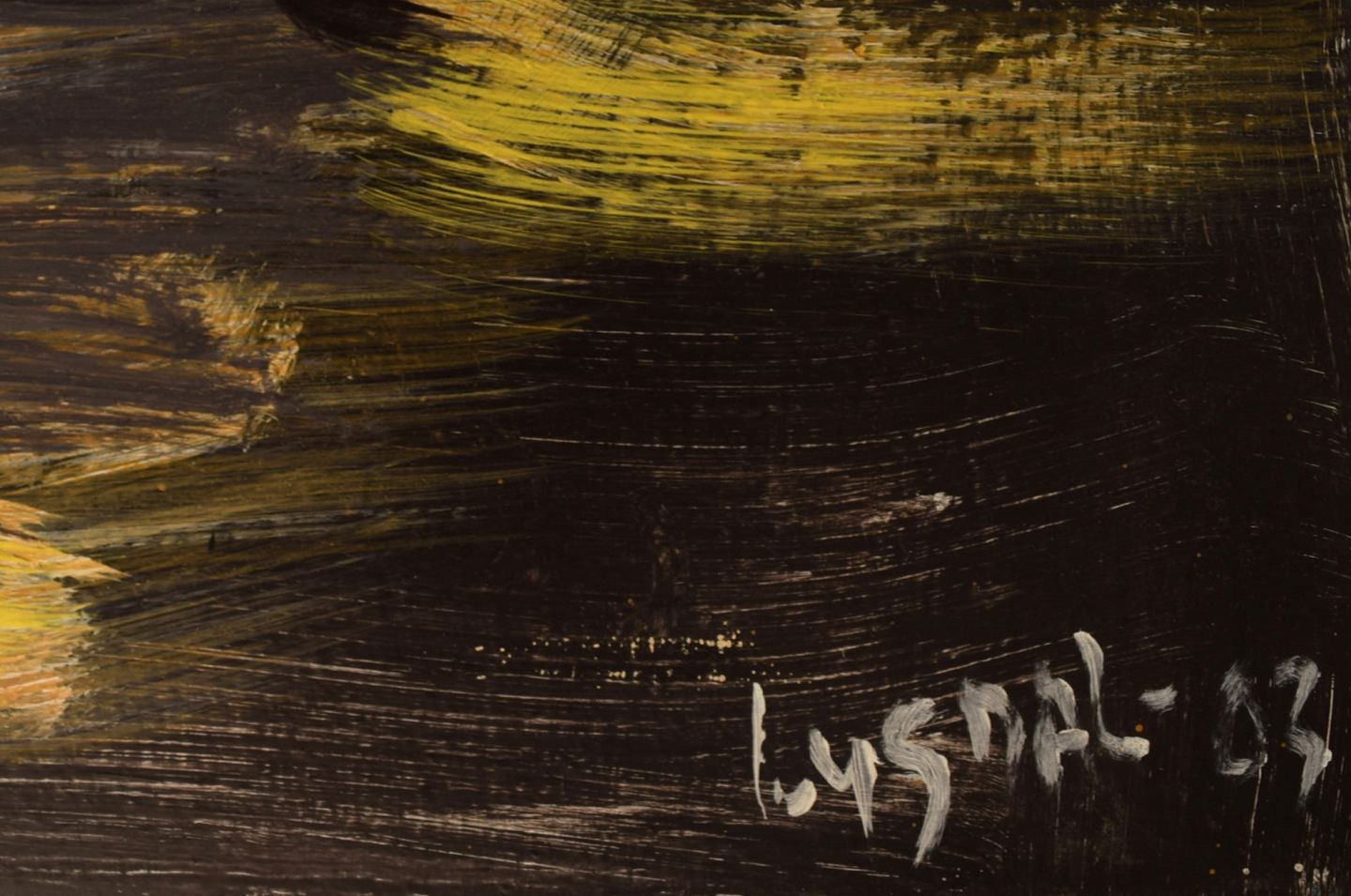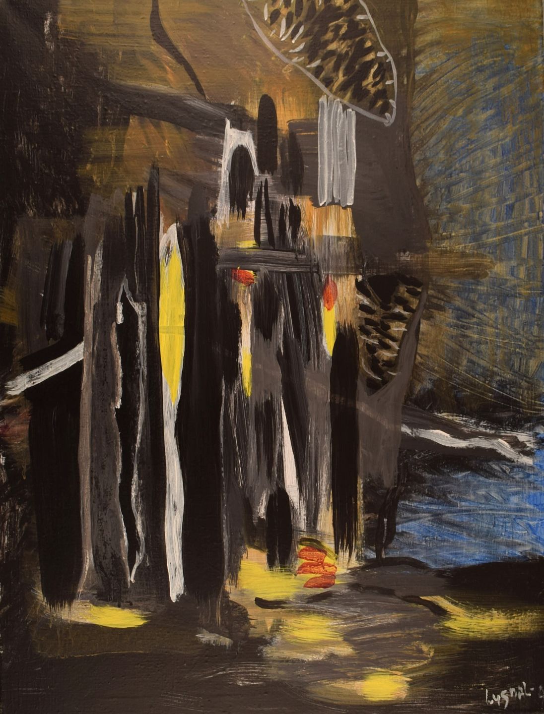 Ivy Lysdal, f 1937. Dansk keramiker og kunstmaler. Akryl på lærred. Abstrakt modernistisk maleri. Koloristisk palette. Sent 1900-tallet.Lærredet måler: 97 x 73 cm.