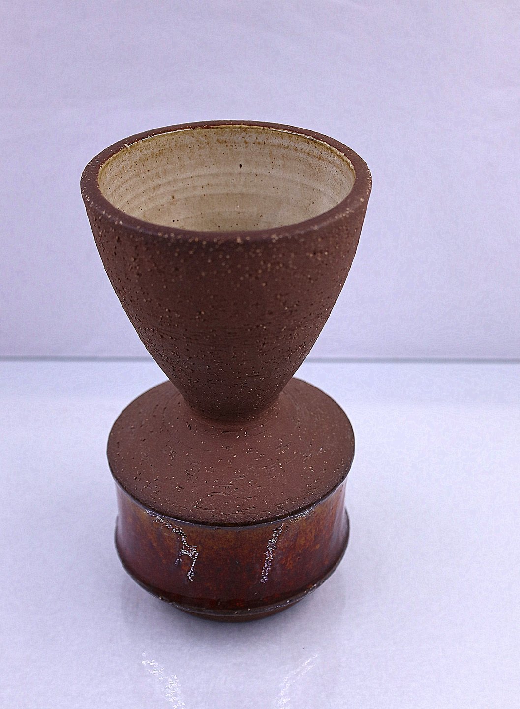 Michael Andersen, Bornholm. Keramik vase, der er delvis glaseret med rødlig glasur, indvendig er vase cremefarvet.Signeret med Michael Andersens karakterske signatur.