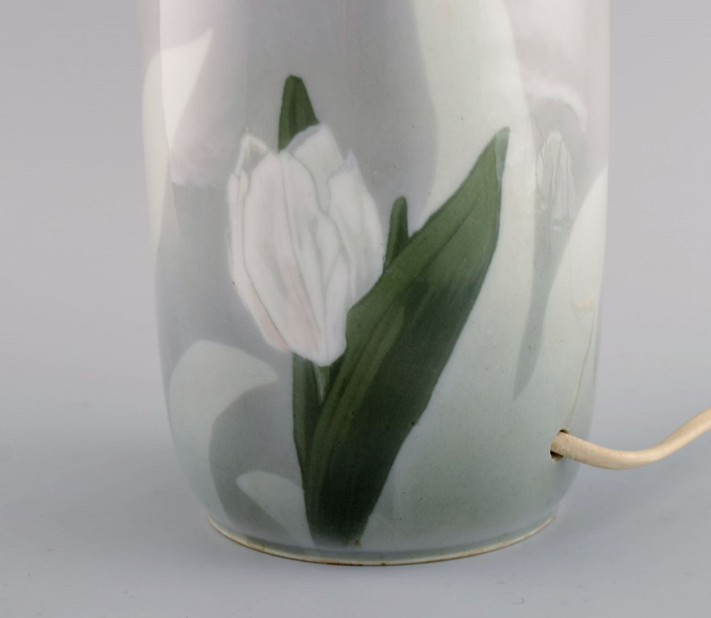 Royal Copenhagen bordlampe i håndmalet porcelæn med blomstermotiver. 1920'erne.Måler: 23,5 x 13 cm (ex fatning).