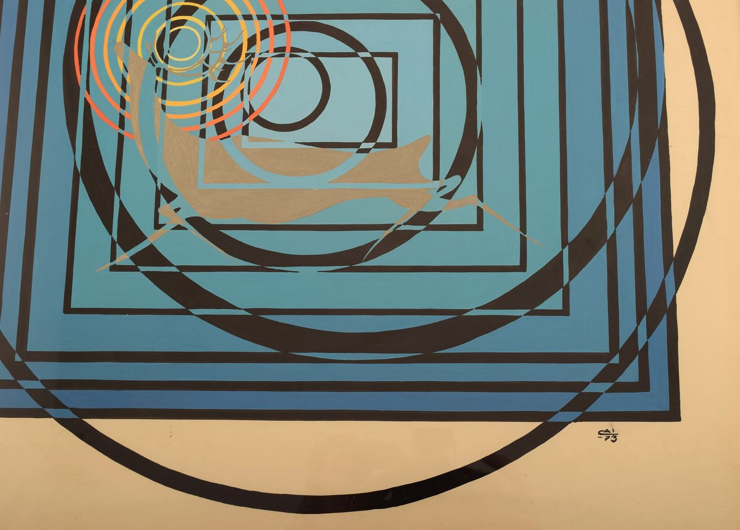 CAI, ubekendt kunstner. Tempera på papir. Abstrakt komposition. Dateret 1973.Papiret måler: 48 x 42 cm.