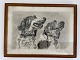 Tegning af to hunde bag glas i fyrretræsramme. Tegningen er signeret El. Camello 46.Mål cirka 47 centimeter x 64 centimeter