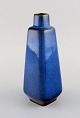 Sven Jonson for Gustavsberg. Lagun vase og skål i glaseret stentøj. Smuk glasur i blå nuancer. 1960'erne.Vasen måler: 20,5 x 8 cm.