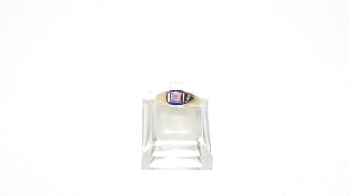 Elegant dame ring med blå sten i 14 karat guld.Stemplet : 585.