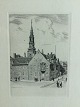 Peter Tom-Petersen (1861-1926):Bispetorvet og Nørregade med bispegården i København med Sankt Petri Kirke i baggrunden.