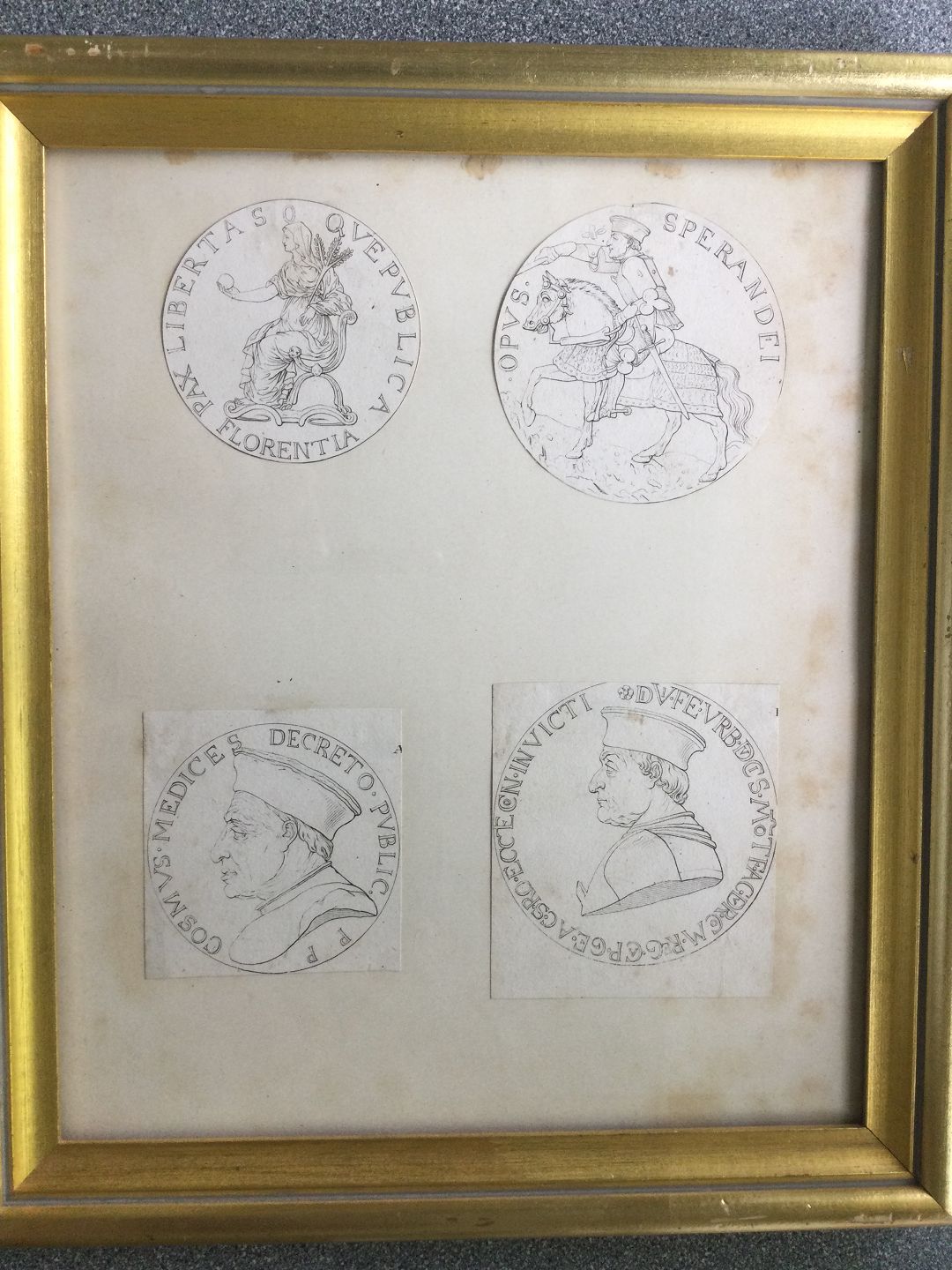 Kobberstik af medaljer (17/18 årh):For- og bagside af 2 medaljer.