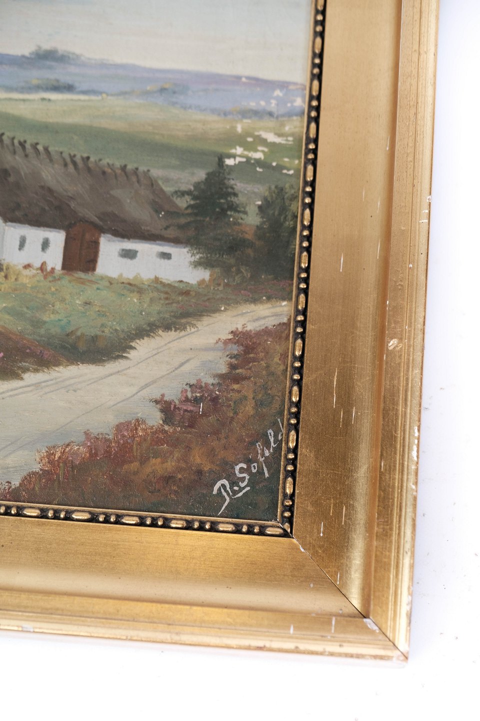 Maleri på lærred med land motiv og forgyldt ramme, med ukendt signatur fra 1920erne.43 x 65 cm.