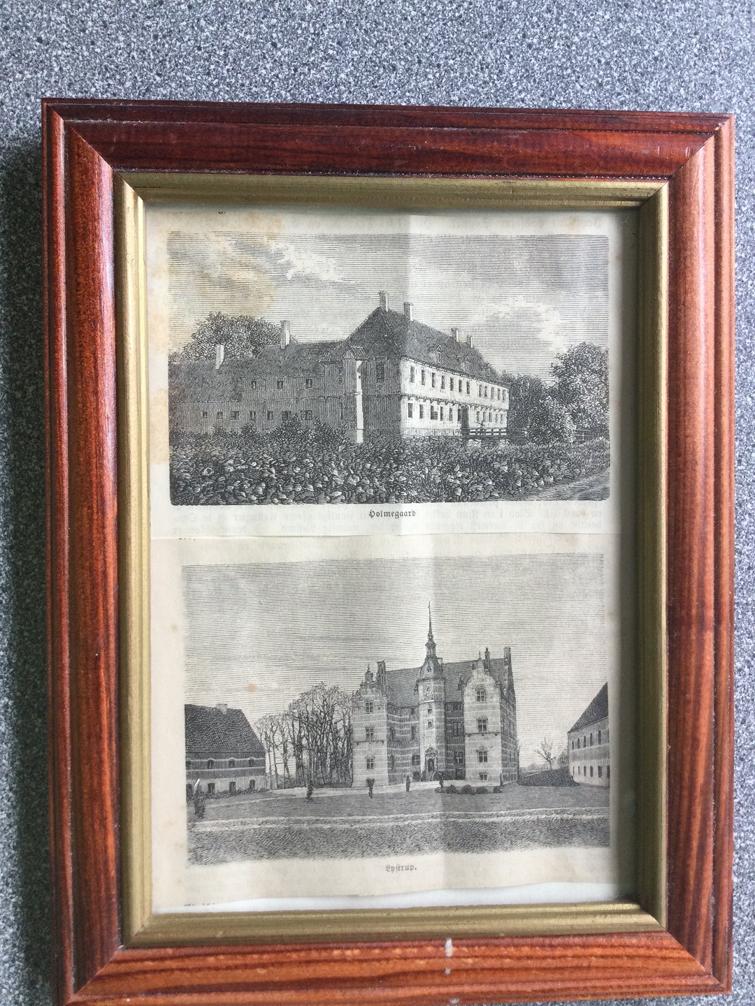 2 små xylografier i samme ramme.