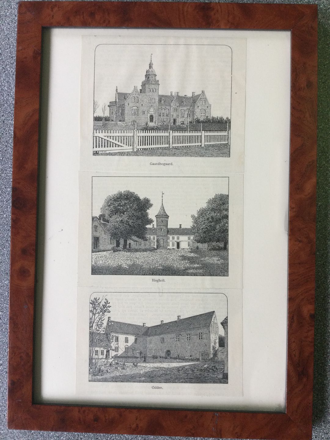 Ubekendt kunstner (19/20 årh):3 små xylografier i samme ramme.
