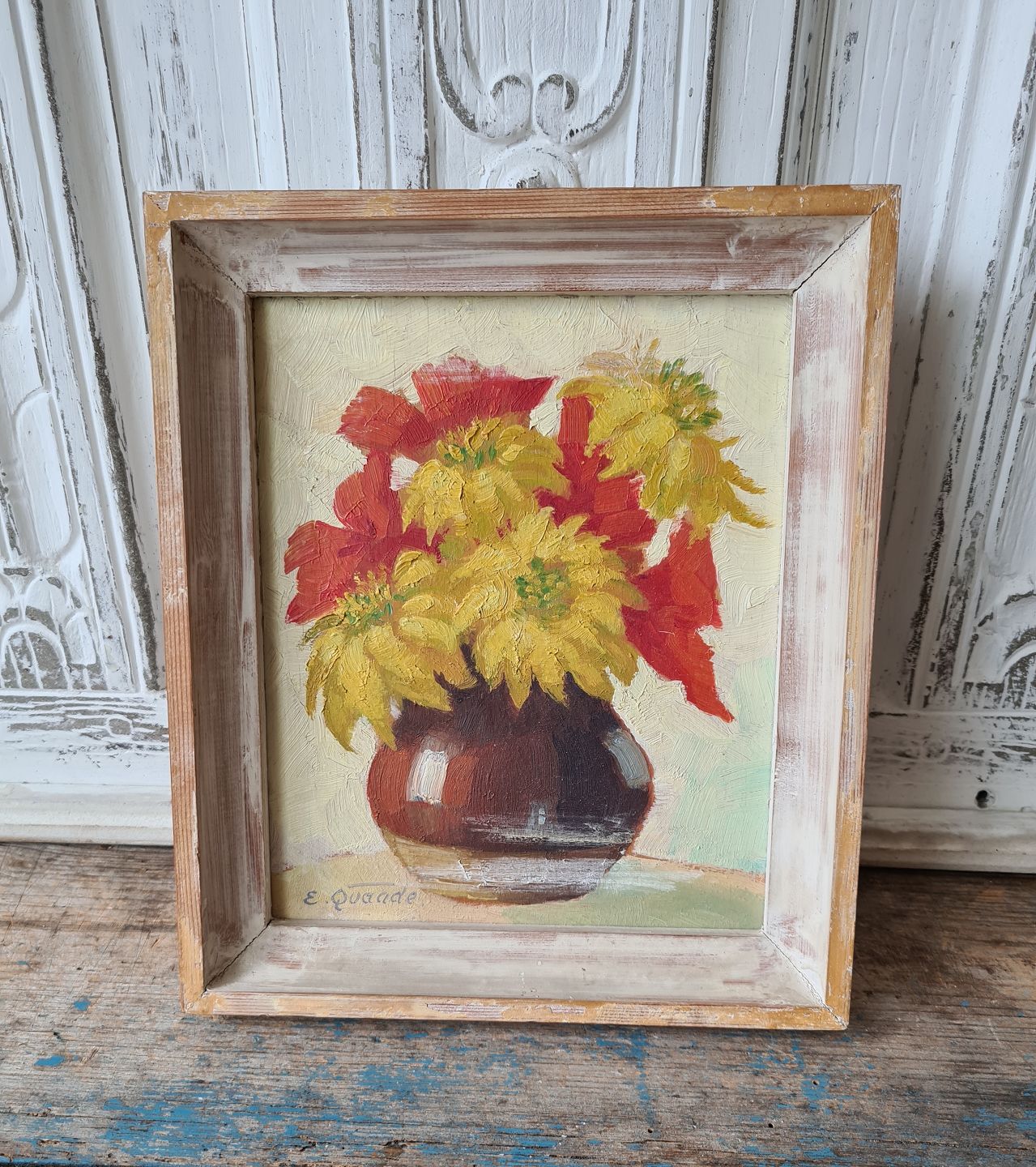 Ejnar Quaade lille maleri - olie på plade. Blomster i vase fra 1954.Maleriet er signeret på forside og bagside.