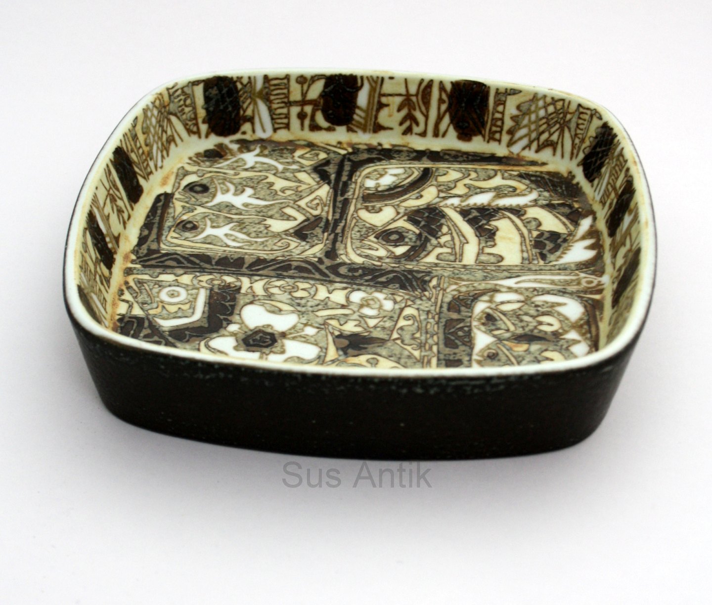 Royal Copenhagen, Fajance, Baca i brune nuancer i mat glasur, designet af Nils Thorsson i 1964. Mindre fad. Nr. 719/2883. 16,5 x 16,5 cm. Højde 3 cm. Pris: 200 kr. stk. Lager: 2 Dealer