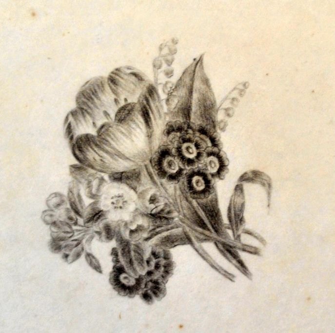 Henne, Elisabeth Clausine (19. årh.) Danmark. Tre tegninger af blomster.Fra ca. 1820.