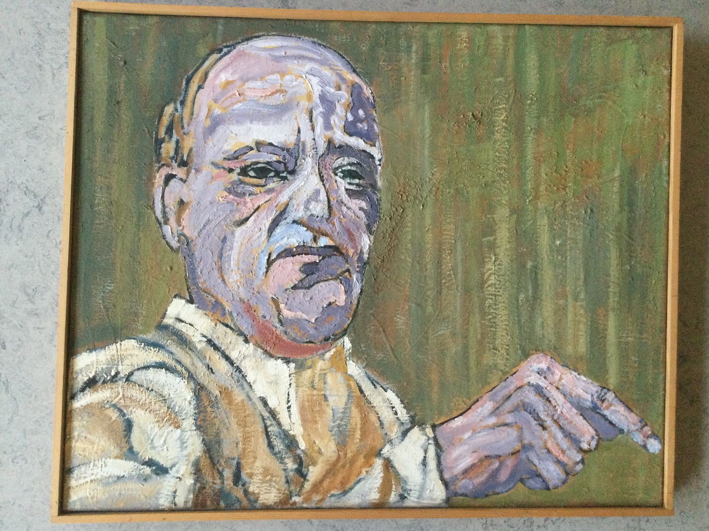 Torben Heron (1939-2019):Portræt af Tyran med okkerfarvet skjorte 1973.