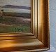 Gunnar Bundgaard Maleri: Græssende køer ved Mariagerfjord - ved Cillehagen med udsigt over Bramslev BakkerOlie på lærred 52 x 65 cm inklusiv original ramme - rammen bære præg af brug og skal renoveres eller udskiftes