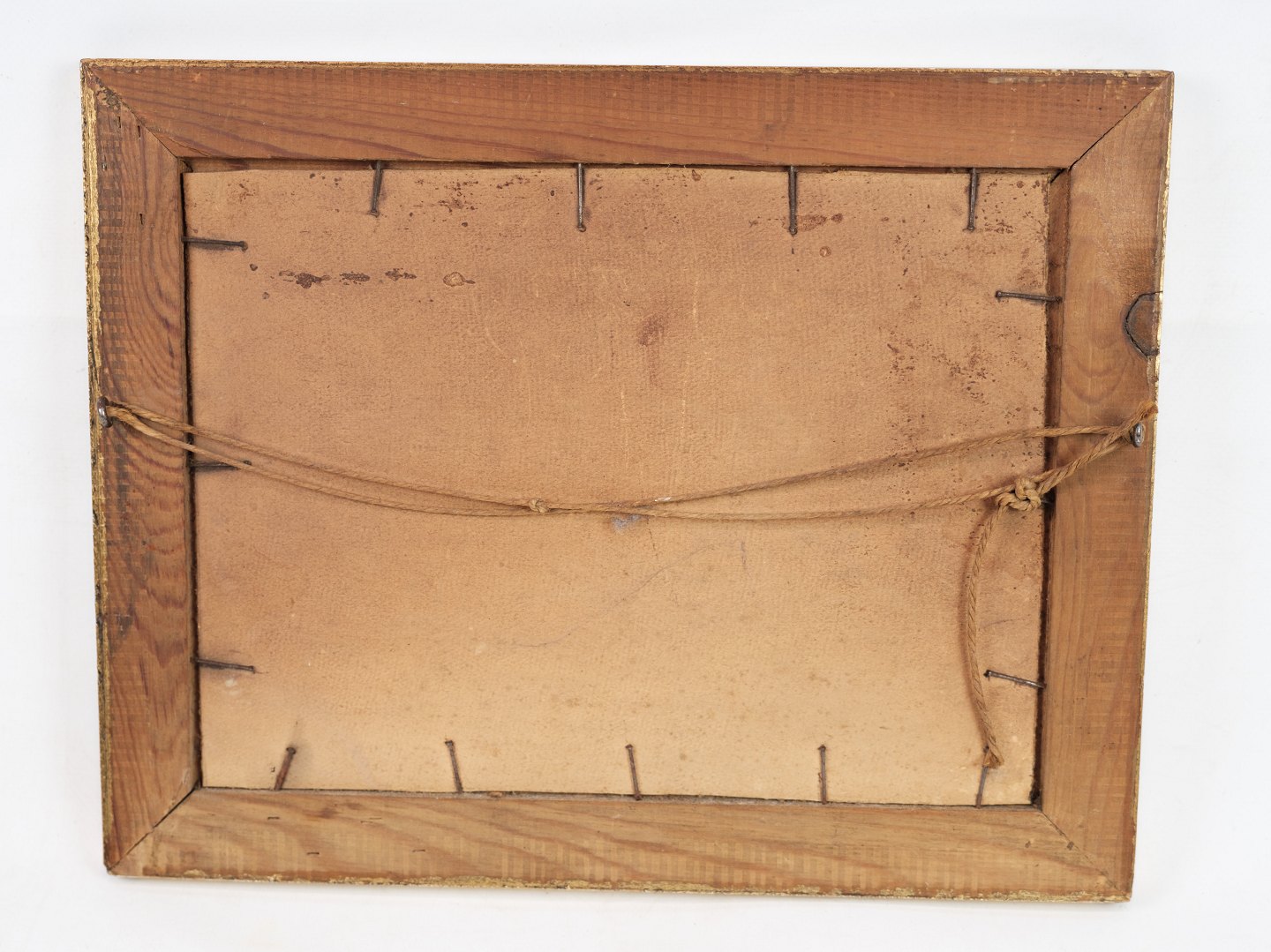 Oliemaler af bondehus i skov, malet på en træplade fra omkring 1930'erne. Står i meget fin brugt stand.Mål i cm: H:27 B:33.5