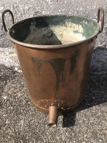 Kobber kar med hanke og bundafløb. Mål: Højde 45 cm, diameter 40 cmLager: 1