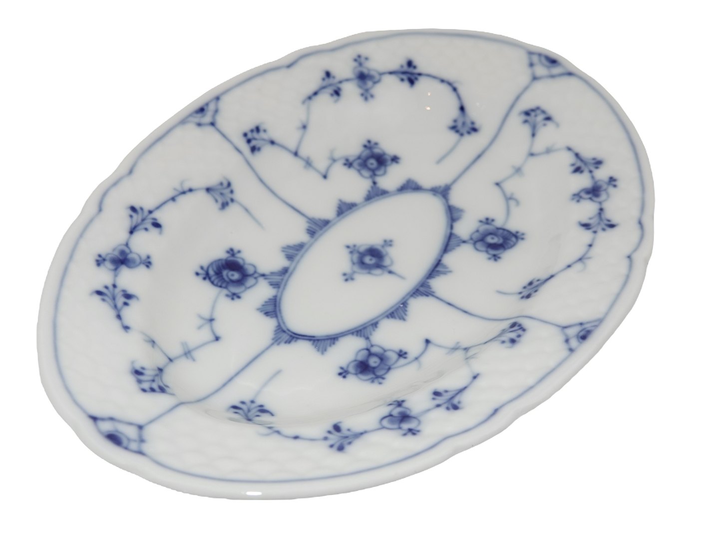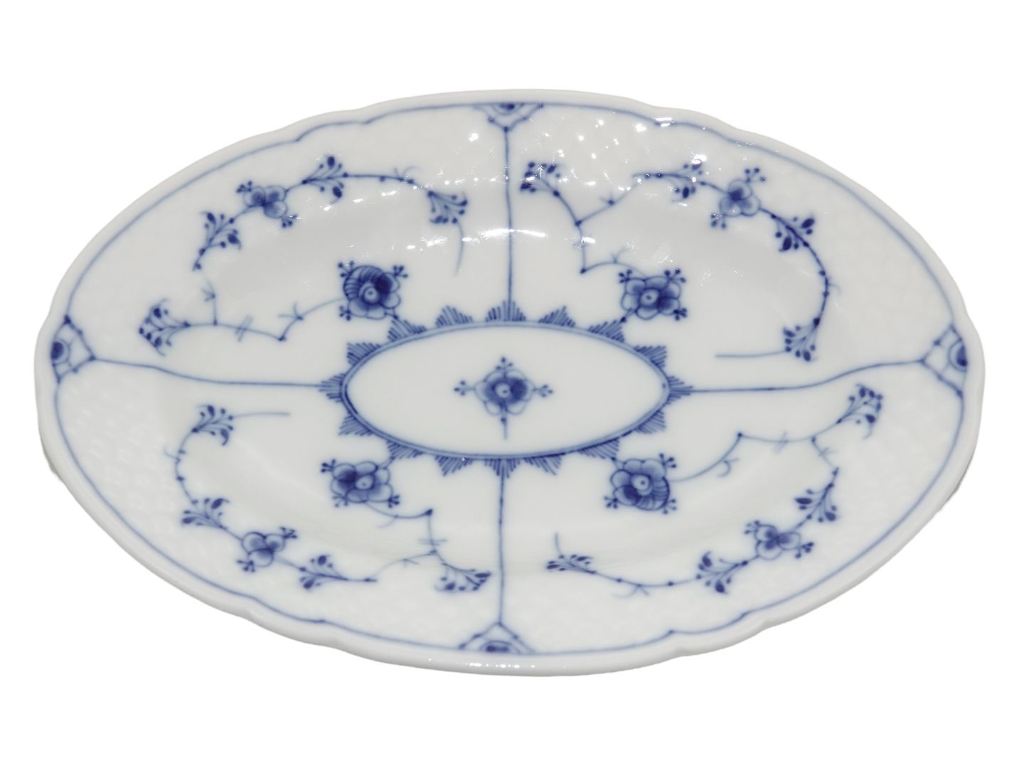 Bing & Grøndahl Blåmalet / Musselmalet, lille stegefad.Af fabriksmærket kan det udledes, at denne er produceret mellem 1915 og 1948.