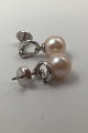 Georg Jensen 18K Whitegold Earrings Magic Pearl and Diamonds Regitze Overgaard Measures L 1.8 cm. (0.70 inch) Diam: 0.8 cm. (0.31 inch) Combined Weight 3.9 gr (0.13 oz)Stock: 0