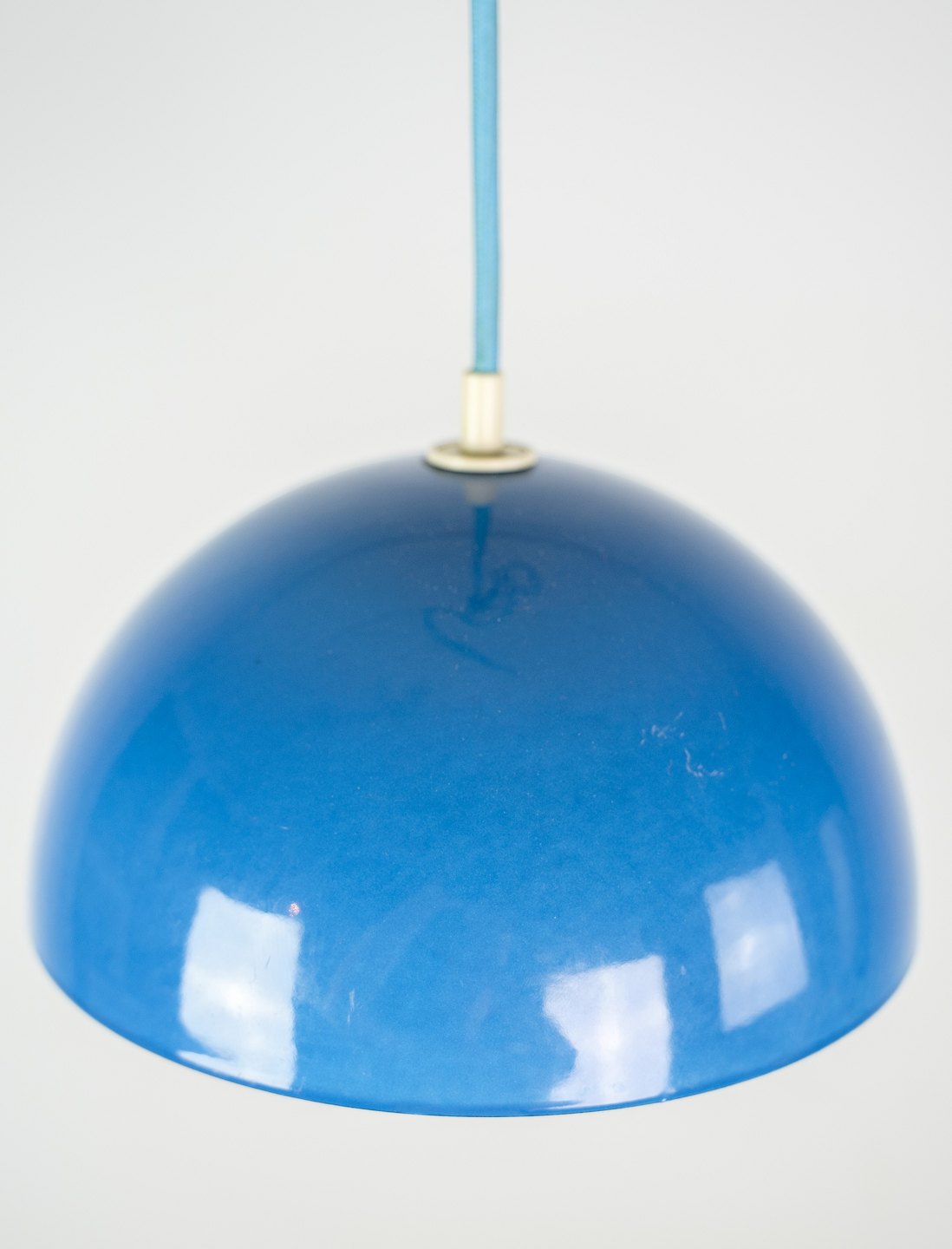 Flowerpot loftslampe, designet af Verner Panton (1926-1998) VP1 i lyseblå farve fra 1970'erne.Mål i cm: H:15 Dia:21