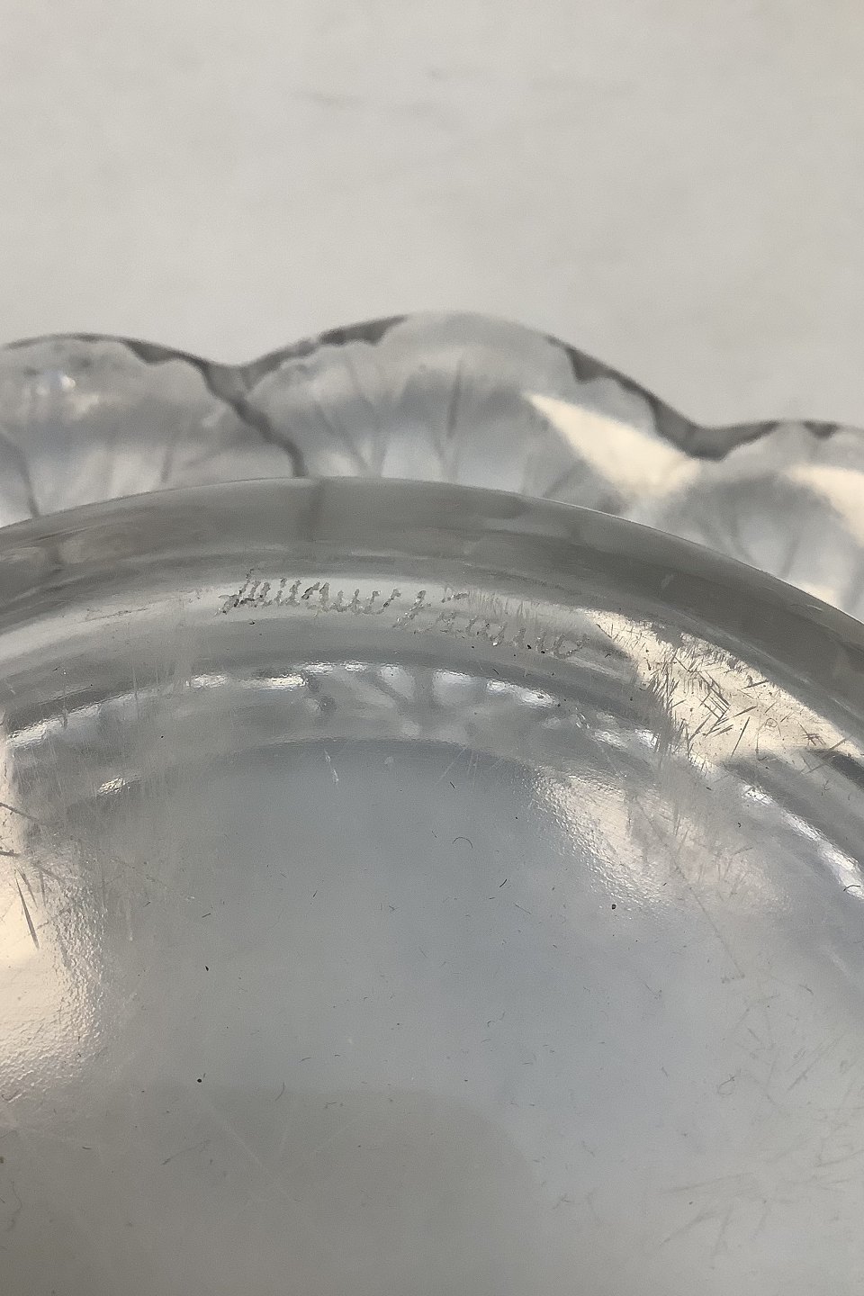 Rene Lalique Fransk Glas skål med Blomster dekoration ( frosted )Måler 23cm x 6cm ( 9.06 inch x 2.36 inch )