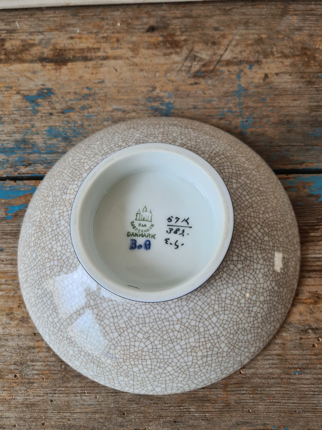 B&G Art Deco skål på fod dekoreret med fisk.No. 5712/382, 2. sortering