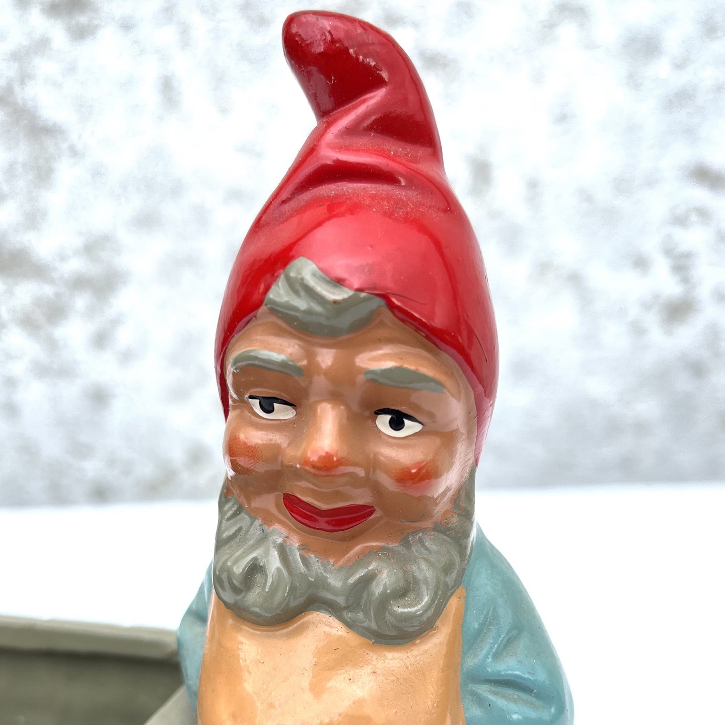 Ler nisse med blomster kumme, 17cm høj, 15cm bred *Perfekt stand*Lager: 1