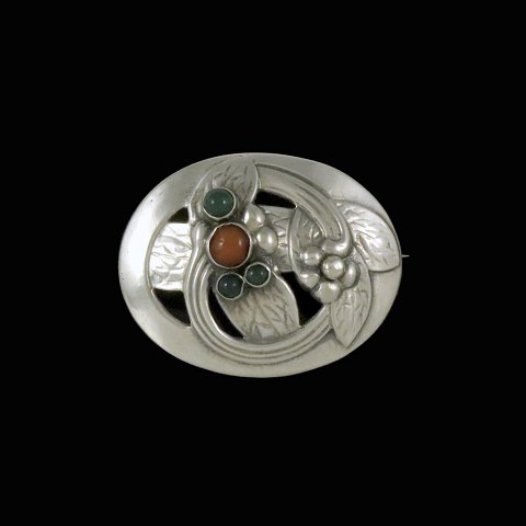 Georg Jensen. Broche i sterling sølv med agat og rav #13.Tegnet af Georg Jensen 1866 - 1935