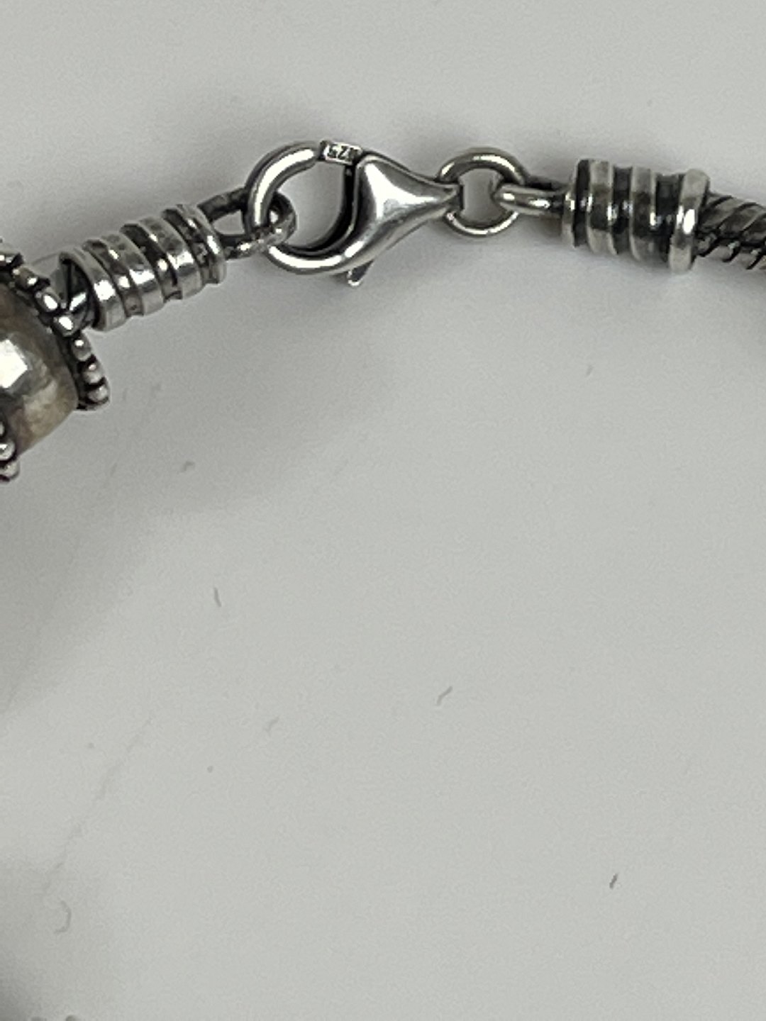 Vintage Pandora armbånd med charms og mellemled, 925 sterlingsølv.Længde: Cirka 20 centimeter