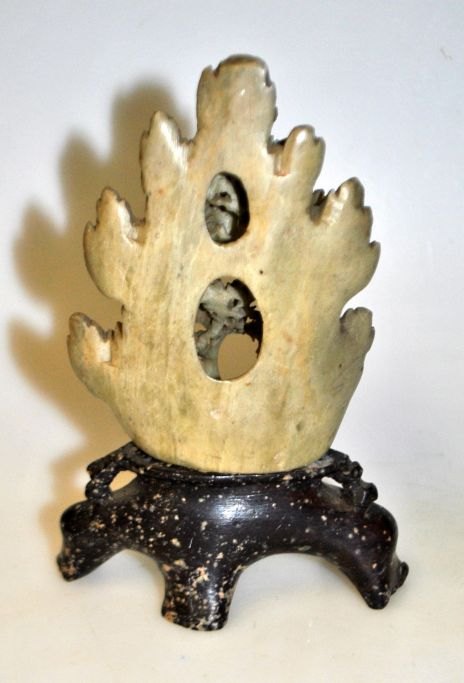 Kinesisk fedtstensfigur 19./20. årh. Tofarvet sammensat fedsten. Dekoration i form af blomst. H.: 15,5 cm. B.: 11 cm. Perfekt stand!Emne nummer: 24796