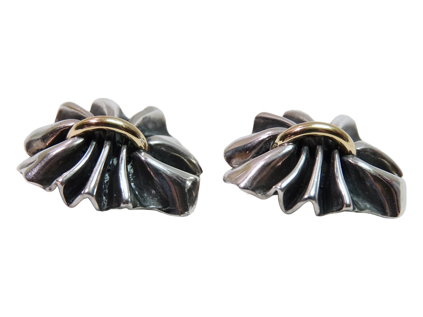 Georg Jensen store øreclips i sterlingsølv og 18 karat guld.Dessinnummer 400.