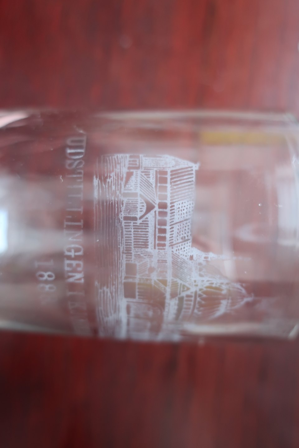 Ølglas med ætsningFra industriudstillingen i København i 1888