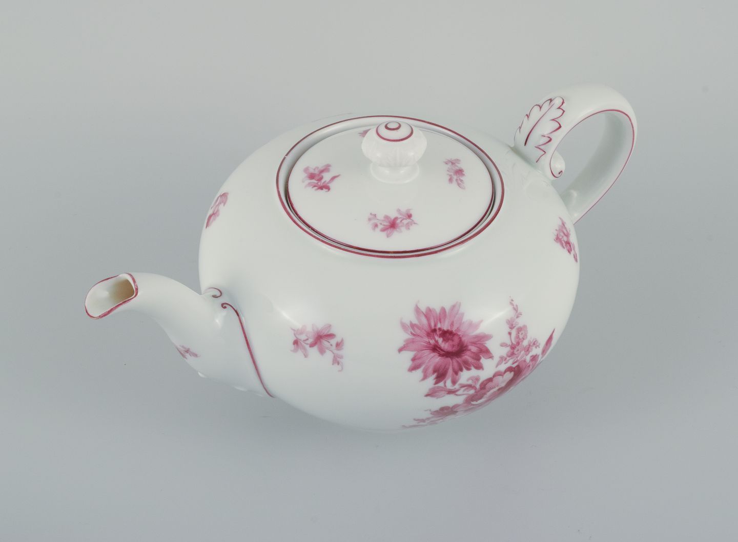 Rosenthal, et te-service bestående af tekande, flødekande og sukkerskål.Håndmalet med purpur blomster.
