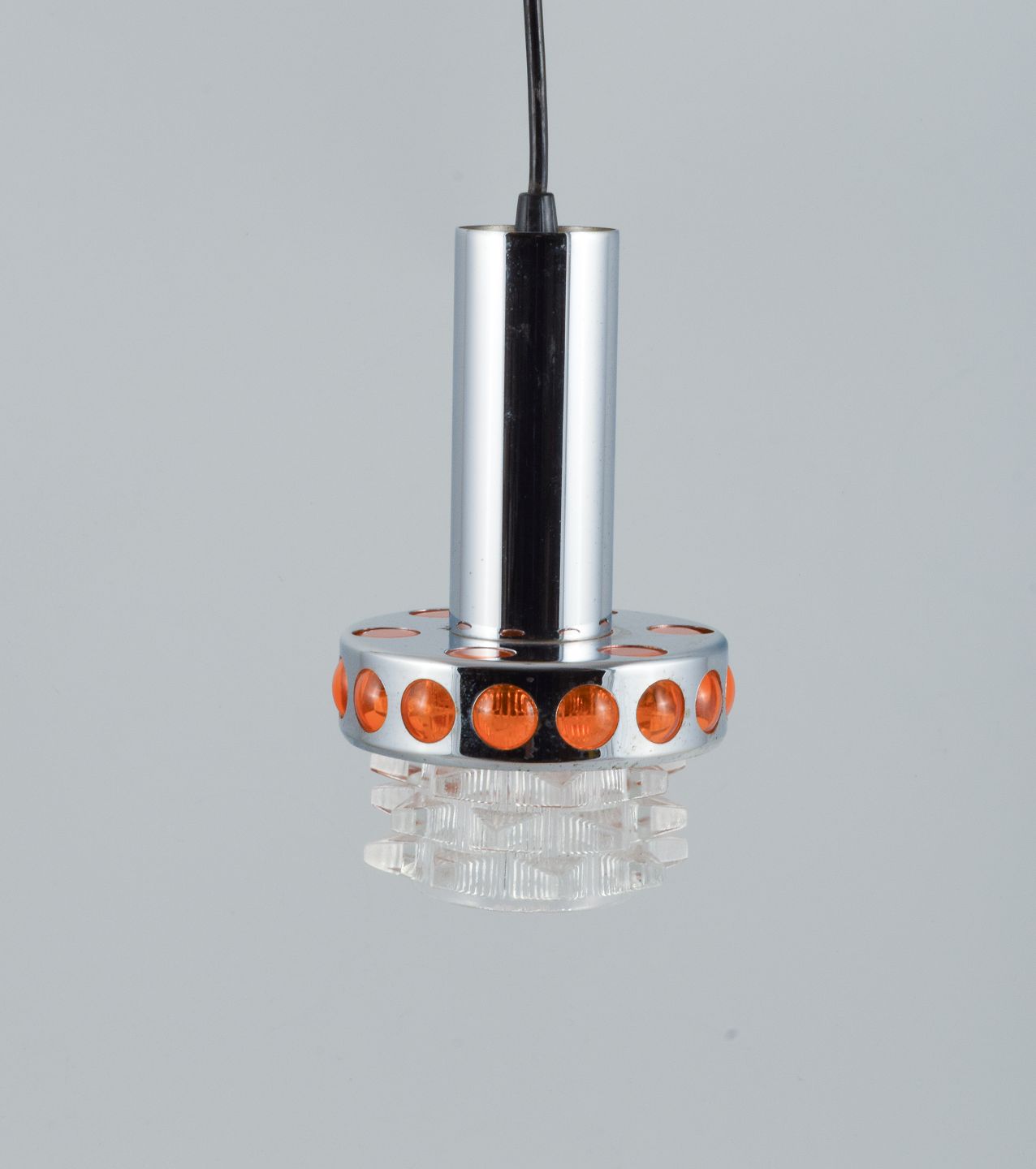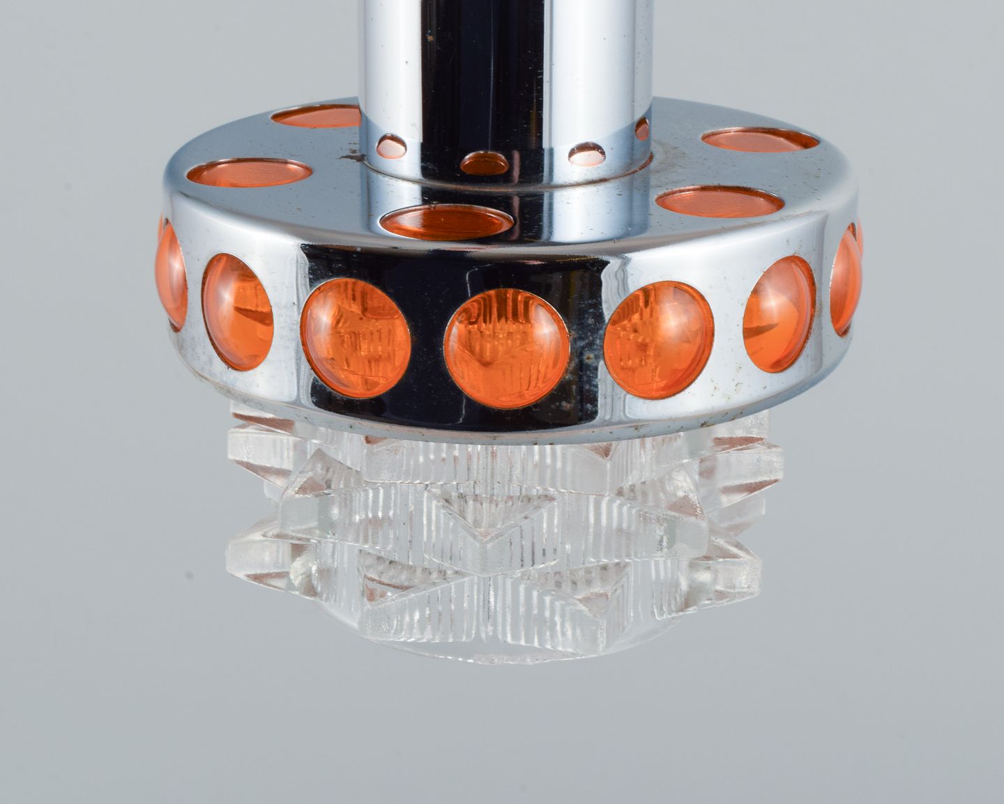 RAAK, Holland. Designerlampe i krom, orange plast og klart glas.Ca. 1970’erne.