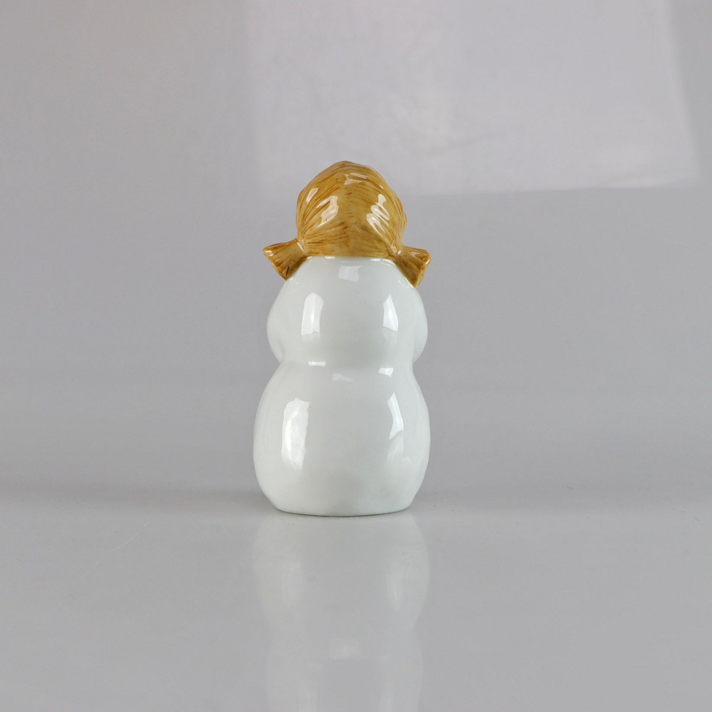 Kongelig porcelænsfigur af snemandskvinde med sovende kat på armen