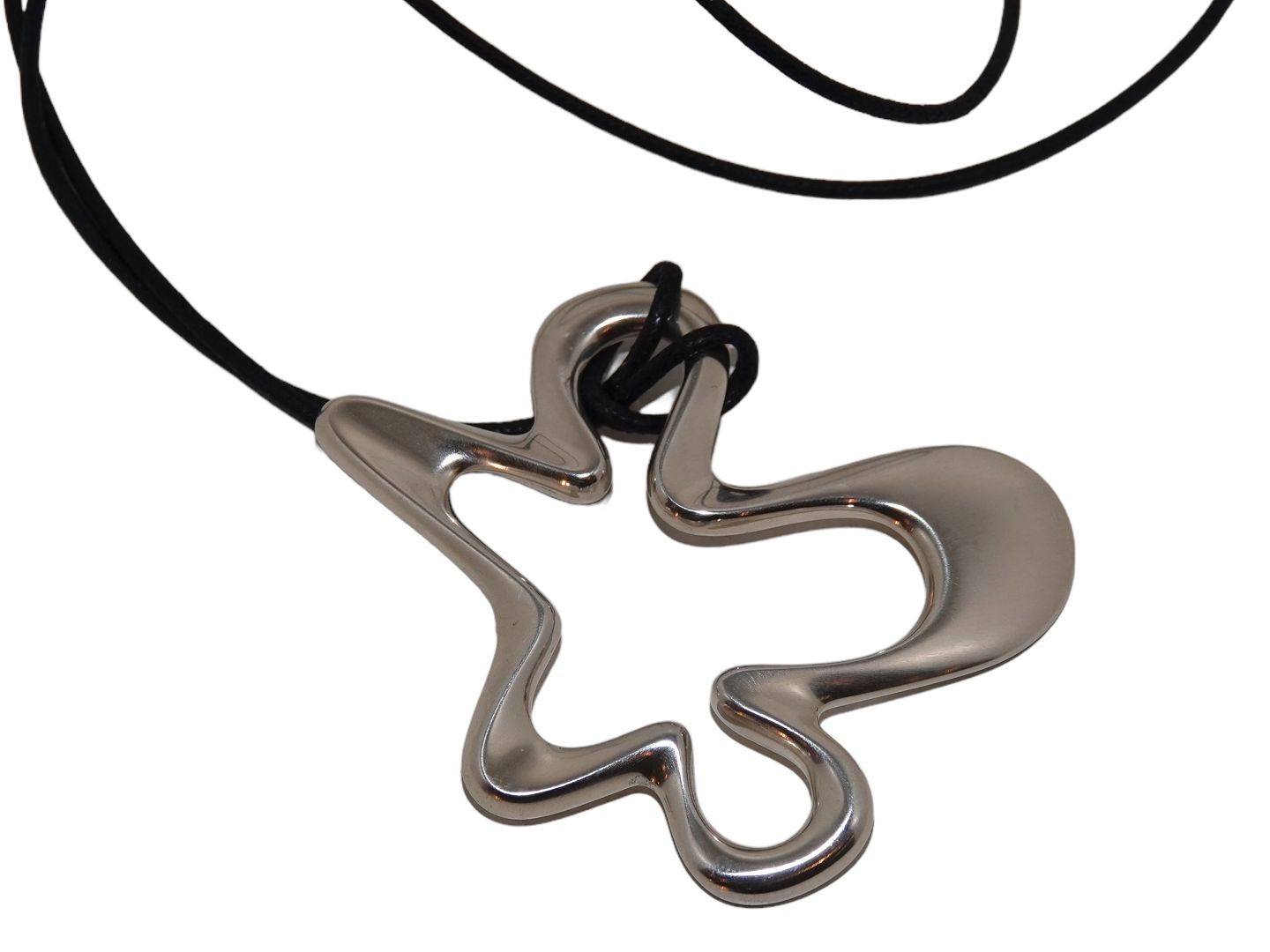 Georg Jensen sterling sølv, stort Splash vedhæng med original lang sort snor.Designet af Henning Koppel.