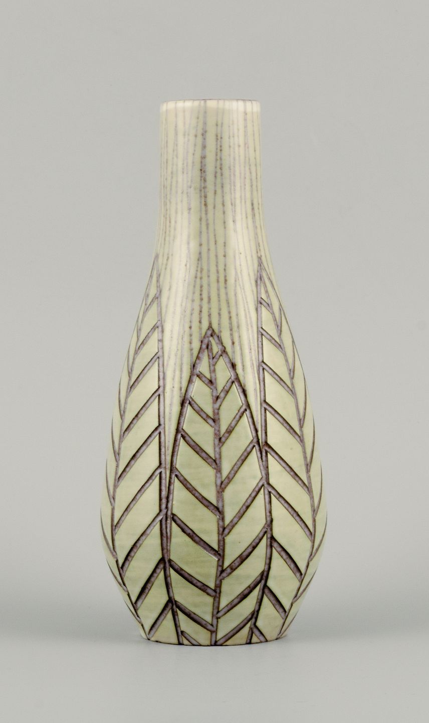 Mari Simmulson for Upsala Ekeby, ”Rhodos” vase i keramik med blade i relief.Ca. 1950/60’erne.