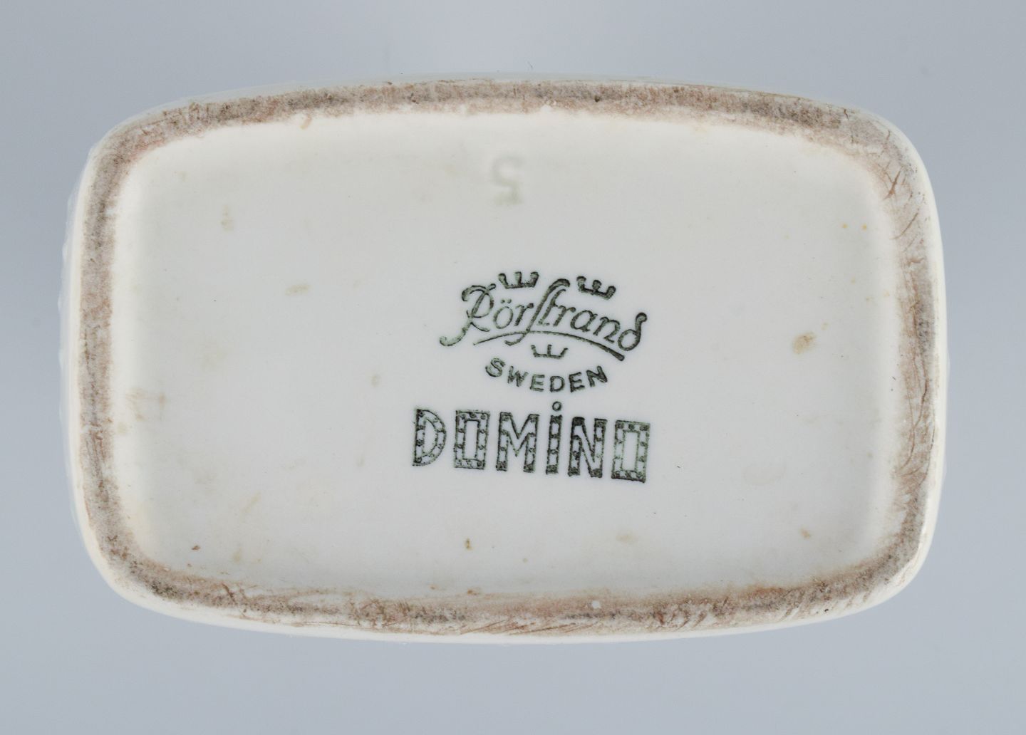Gunnar Nylund for Rörstrand, et par ”Domino” keramikvaser i hvid glasur, retrodesign med geometriske felter.1960/70’erne.